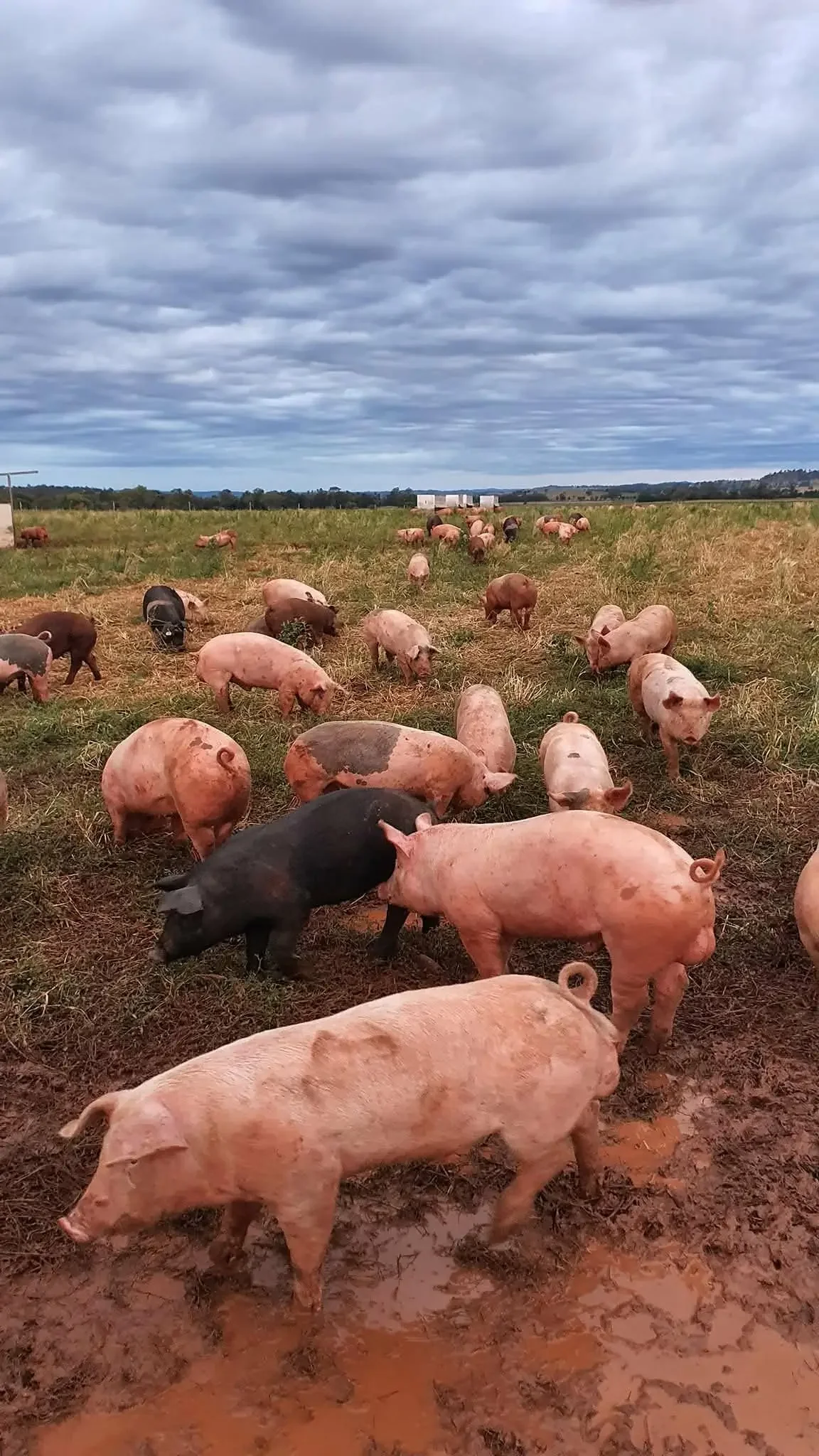 Every pig is born, raised, and finished on pasture. No farrowing crates. No grower sheds. No feedlot finishing. Pigs are rotated on a month-on, month-off grazing system to maintain pasture quality and animal condition.