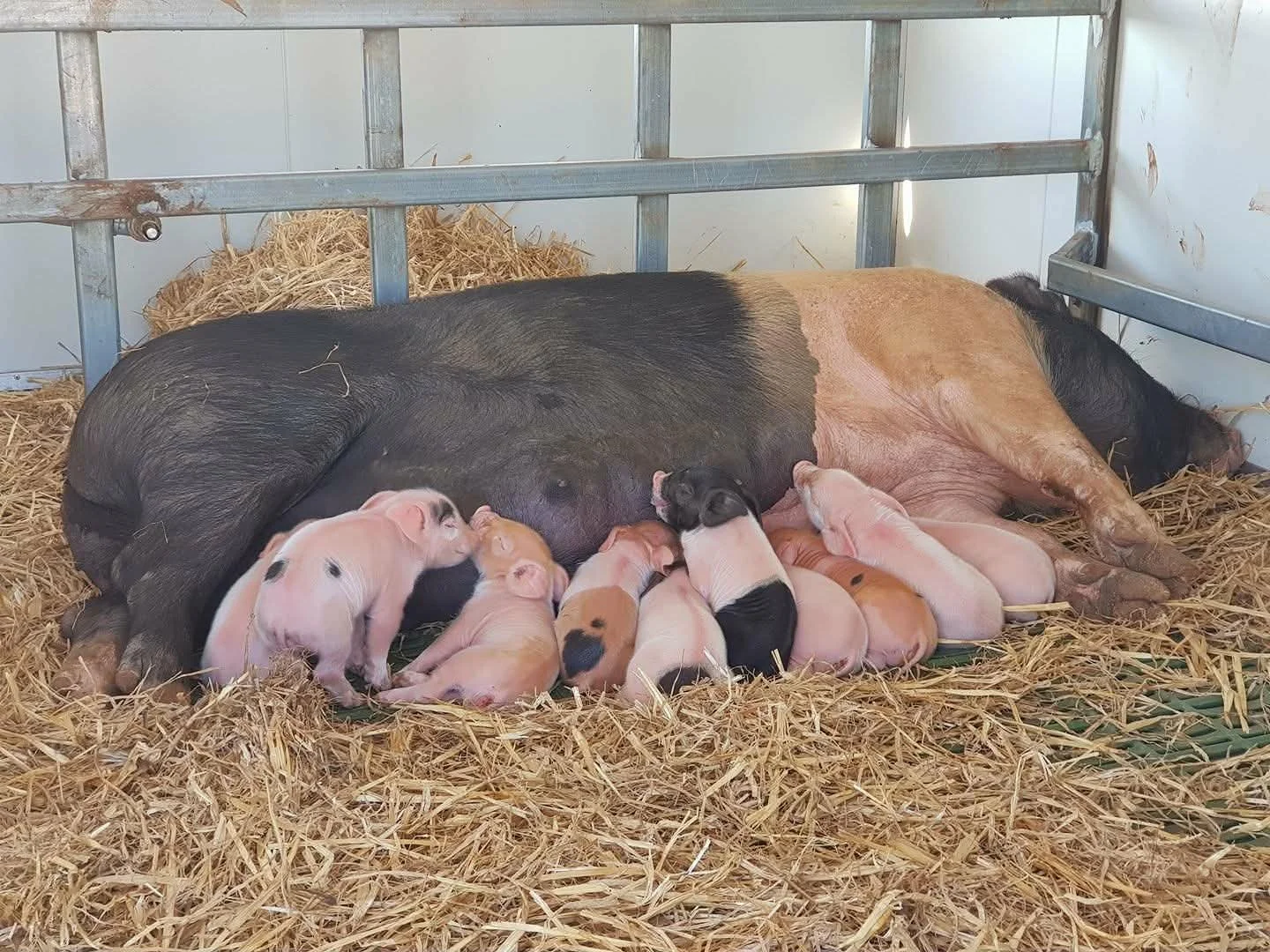 The herd mainly consists of Hamrock sows (F1 Hampshire and Duroc cross) with Large White or Landrace terminal sires, producing white carcass pigs preferred by butchers. All pig diets are mixed on the farm using locally sourced grain when seasons permit.